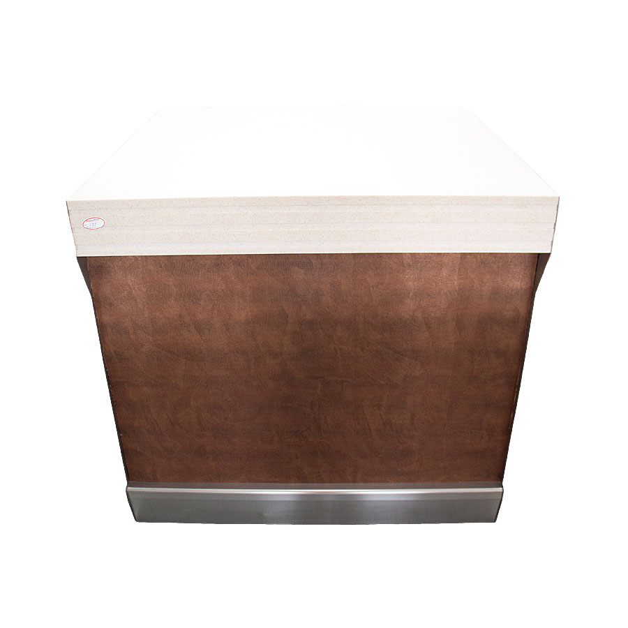 Ανοξείδωτη κατασκευή-Ιδανικό για χρήση ταμείου ή παραδωτηρίου.Περιλαμβάνει επένδυση επιφάνειας με γρανίτη και πρόσοψη με καφέ επένδυση.. Πόδια ρυθμιζόμενα και διαθέτουν κάλυμμα στην πρόσοψη. Με 2 πόρτες ανοιγόμενες Εξωτερικές διαστάσεις:95Χ90Χ90cm.